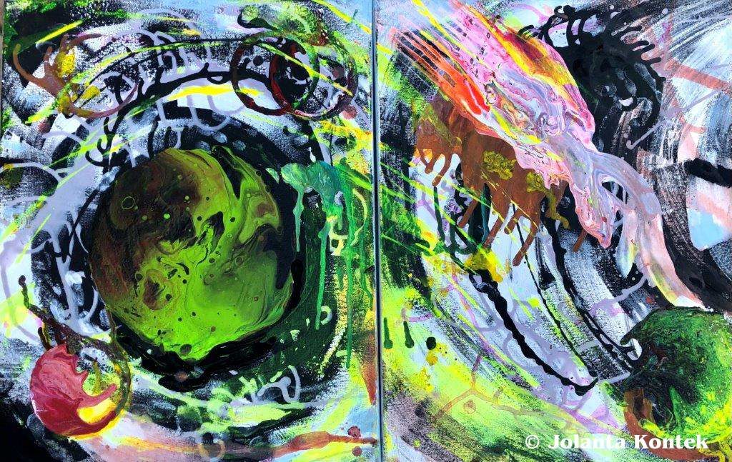 Wraz z artystą Januszem Maksymiukiem ponad dziesięć lat temu zainicjowaliśmy projekt „Przenikanie Światów”. Jest to eksperyment tworzenia obrazów wspólnych, którego efekt końcowy, to dzieło procesu malarsko-konceptualnego realizowanego w tym samym czasie przez dwie osoby.