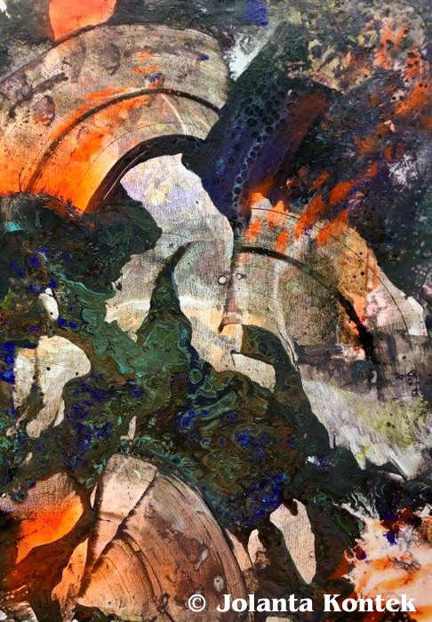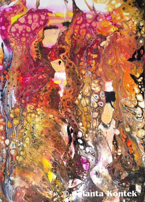 Zanurzona w magię, która jest dla mniej istnienie czerpię inspiracje zarówno z obserwacji, nauki, kontemplacji świata zewnętrznego ,jak i głębokich poszukiwań intuicyjnych, snów, przeczuć, subiektywnych przeżyć. W tej wielowymiarowej czasoprzestrzeni poszukuję ukrytych znaczeń, kodów, procesów, relacji, barw, form, faktur, dźwięków.